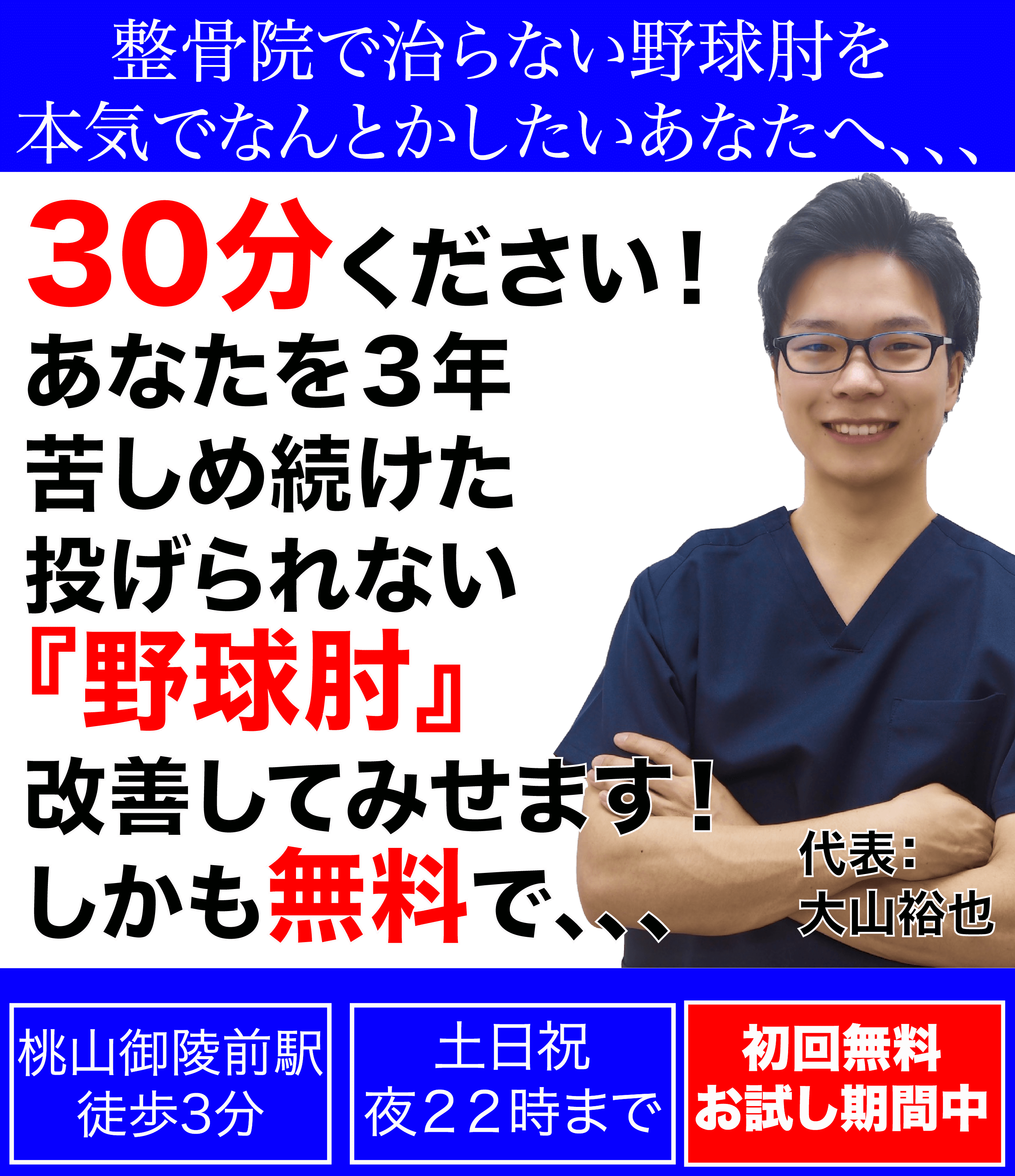 私は京都市にあるどの整形外科・整骨院・鍼灸・整体・マッサージよりもあなたの「肘の痛み」に向き合い、丁寧な施術によりその肘の痛みを改善することを目標に施術いたします。