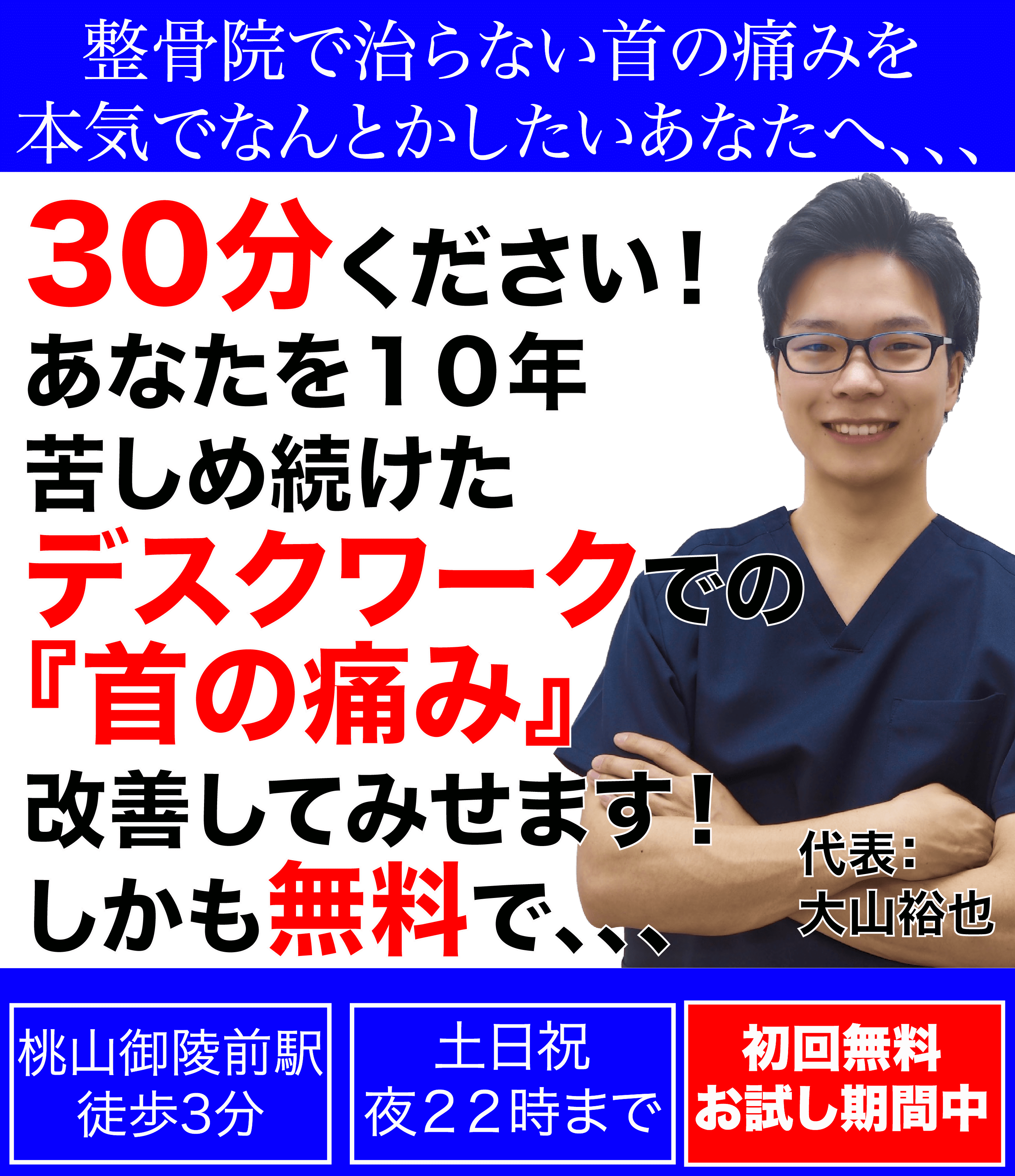 肩こりでお困りのあなたは、一度整体院悠の大山先生を訪ねてみてください!後悔させません!